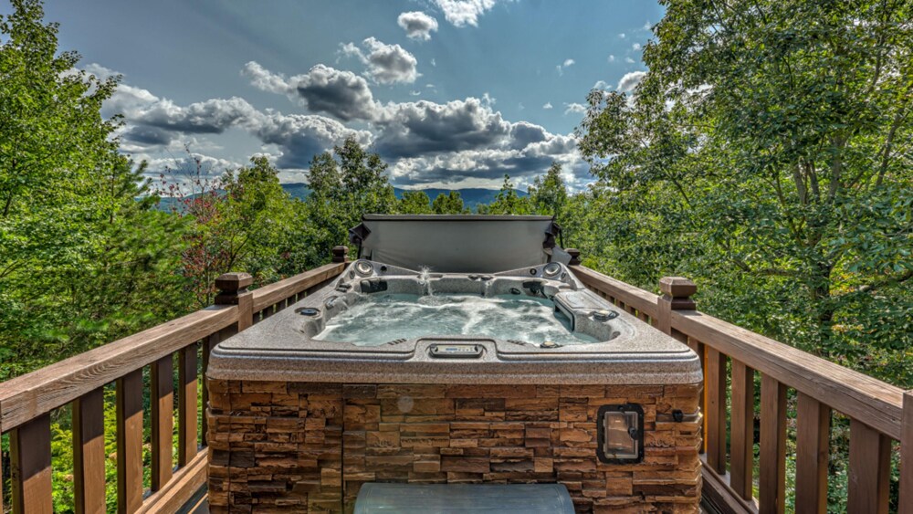 Cohutta Sunset Cabin Rentals Of Georgia Hot Tub On The Covered Porch Overlooking Gorgeous Mountain Views Hot Tub Outdoor Hot Tub Cover Cabin Hot Tub